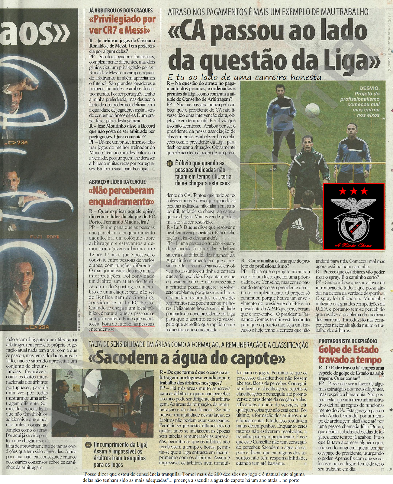 Começo com a entrevista do querido da arbitragem portuguesa, aquele que tal como o garrido e outros, soube o que tinha de fazer no mundo da arbitragem para ser alguém na vida, tudo por causa da inabilidade em ser bom (ou eficiente ou mesmo honesto) em qualquer outra coisa. Eis um excelente exemplo de demonstração de narcisismo: