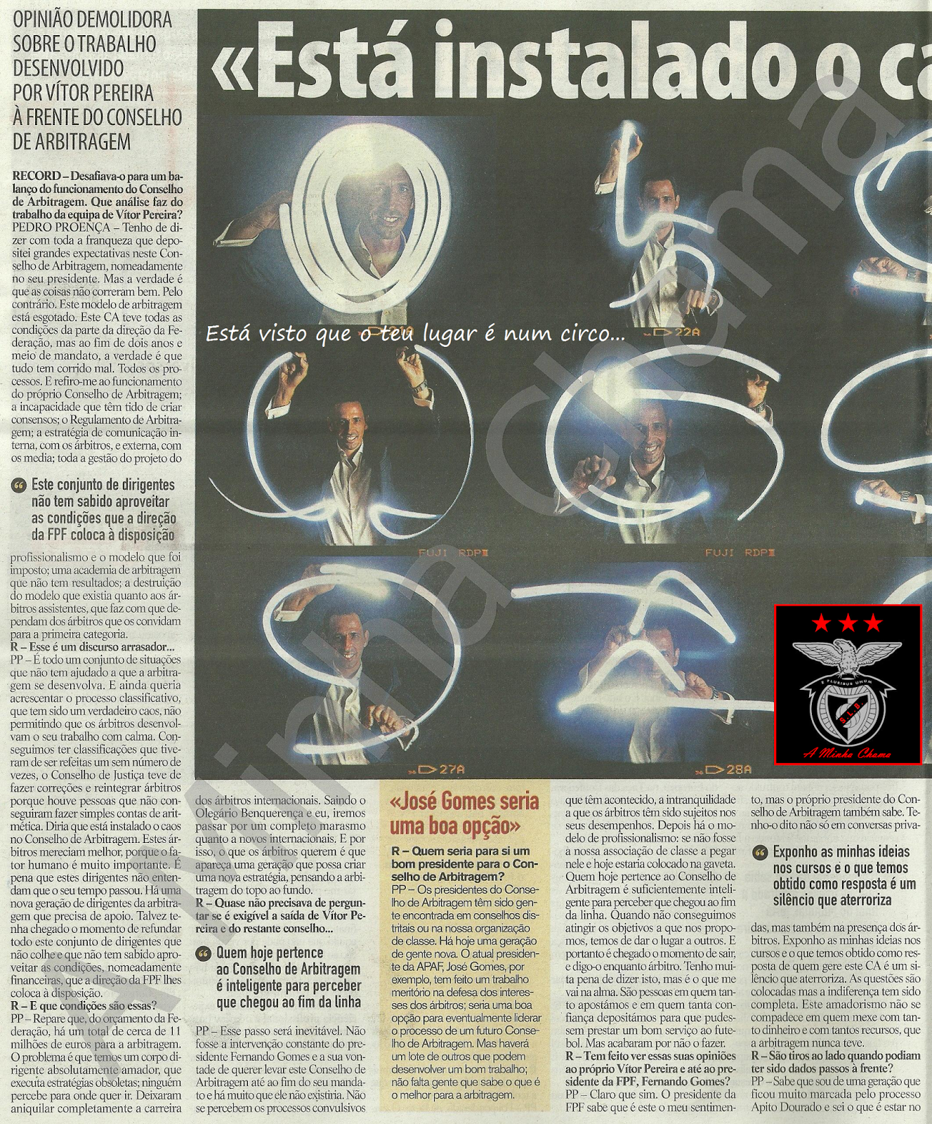 Frase incrível: "Sempre disse que sou a favor da introdução de tudo o que possa ajudar na defesa (já está a trabalhar para o futro) da verdade desportiva" F@£#-se! Brilhante pá. Com a introdução de tudo isso... Isto, isto e isto (fora o resto que já é tanto), ter-te-iam valido uma aposentadoria há anos pá!