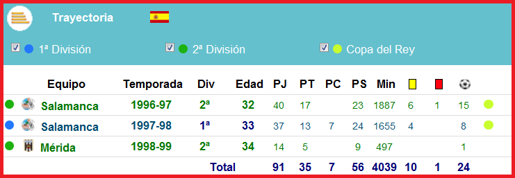 és um tipo que lês o blogue do Alberto Miguéns, logo deverias saber que o zerozero não é confiável. os números dele no Salamanca e no Mérida estão errados. estão errados por que eles não contabilizam a 2ª divisão espanhola.