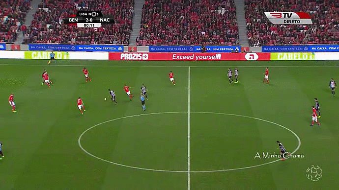 Curiosidades... Interessante as movimentações que aparentemente foram testadas por RV na segunda parte. Foi perceptível ver Fejsa a jogar muito encostado à lateral direita, o que deu espaço para Nelson subir e a oportunidade para Salvio se aventurar por territórios mais centrais. Pizzi, muito curto, ficou mais no lugar de Fejsa mas todas as referidas movimentações dos seus colegas (não esquecer Zivkovic, Jonas e Mitroglou que prendiam muitos adversários), fizeram com que os jogadores do nacional se desposicionassem no miolo... Esta experiência, retirou muita profundidade ao Nacional que não soube reagrupar o seu conjunto para atacar a baliza de Ederson. Interessante sem dúvida.