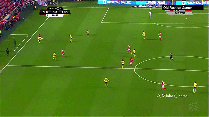Jonas saiu da grande área, atraindo 5 jogadores do Arouca à sua volta!!! Fez um cruzamento de régua e esquadro para a conclusão irrepreensível do jogador grego.
