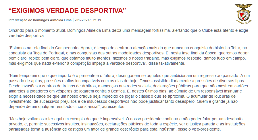 Cabe a todos, adeptos incluídos, defender de forma mais firme possível o nosso clube.